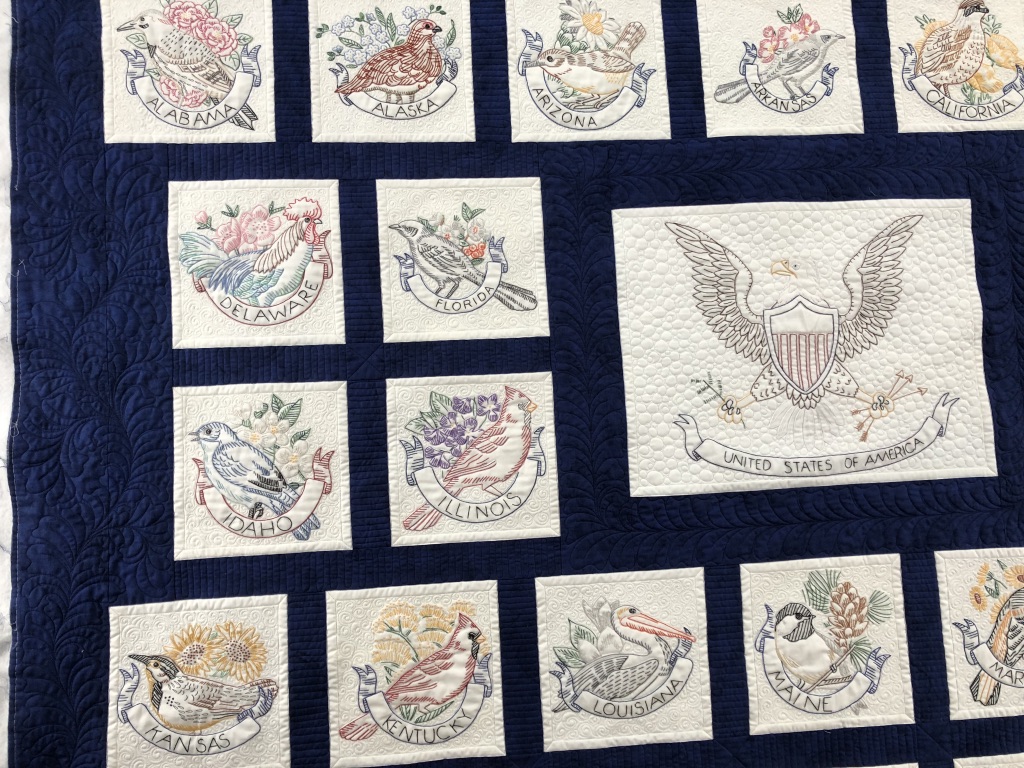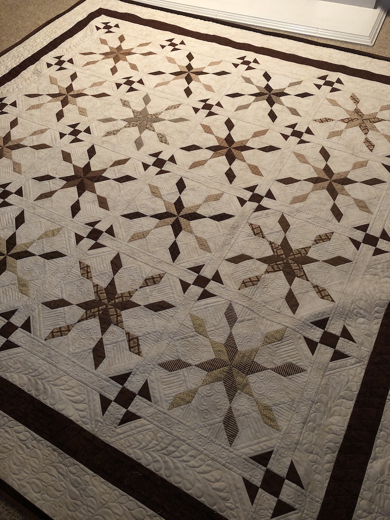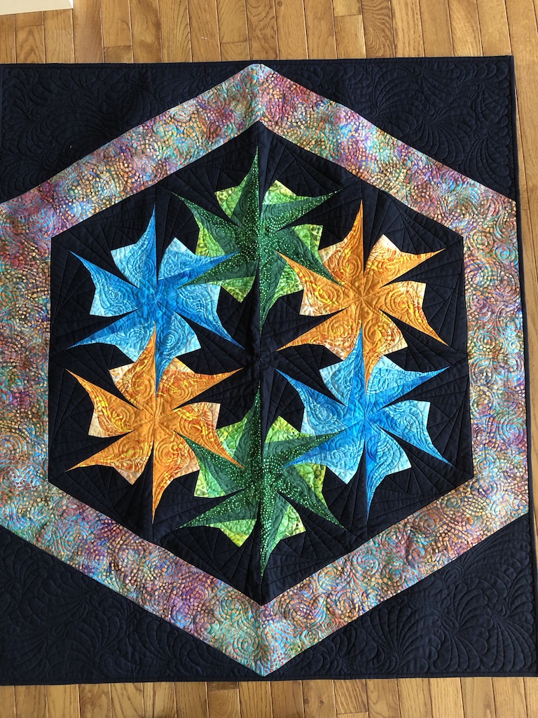 My quilting journey began many years ago at (and under) the quilts my grandmother and mother were hand quilting. It wasn’t long before I was hand quilting alongside them. My first quilts were hand quilted baby panels for each of my five children. I started piecing quilts over 10 years ago. Once I started piecing quilts, I was hooked on quilting! I love every part of the quilting process, the designing, piecing and quilting!
